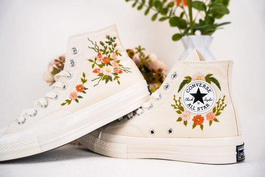 Custom Converse Wedding Bridal Flowers Embroidered High Tops
