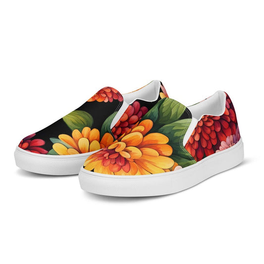 Vibrant Zinnia Print Women’s Slip-on Canvas Shoes